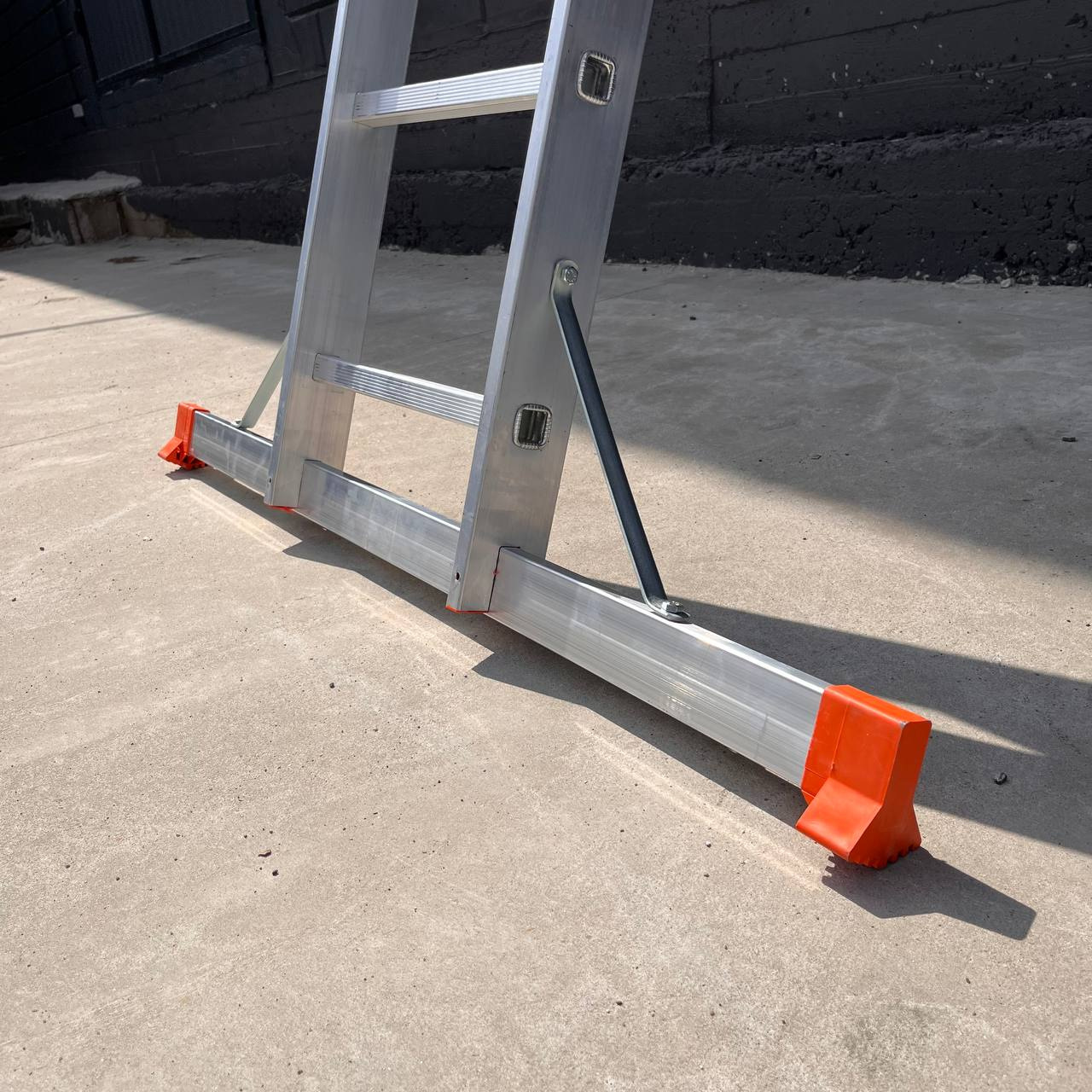 Універсальна алюмінієва односекційна драбина 4 м на 15 сходинок може використовуватися як розсувна приставна драбина і як самостійна двостороння стрем’янка.