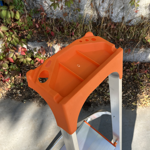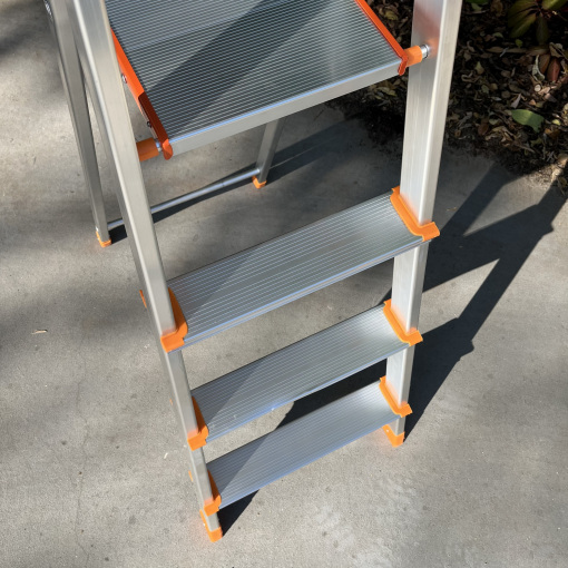 Драбина 1 м на 4 сходинки виготовлена із міцного алюмінієвого профілю і складається із двох секцій, з`єднаних дугою або спеціальним кріпленням.