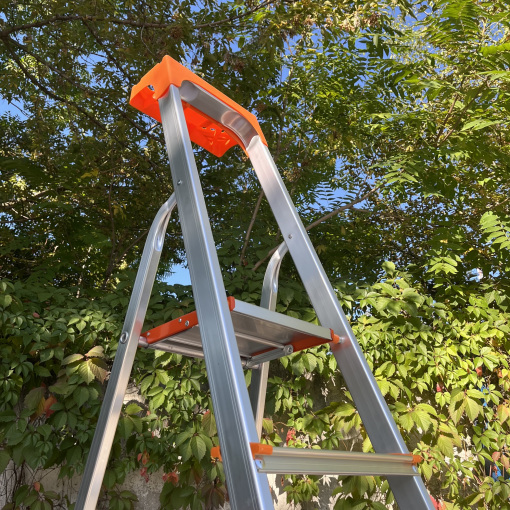 Ця алюмінієва стрем'янка для дому на 8 сходинок ідеально підходить для виконання різноманітних завдань, таких як ремонтні роботи, фарбування, заміна лампочок або доступ до високих полиць.